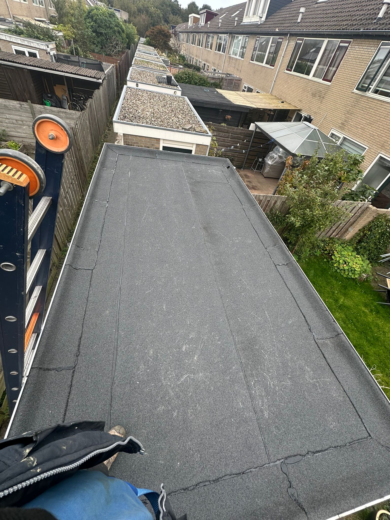 - Nieuwe onderlaag + toplaag geplaatst: hoogwaardige dakbedekking aangebracht voor een waterdicht en duurzaam resultaat.